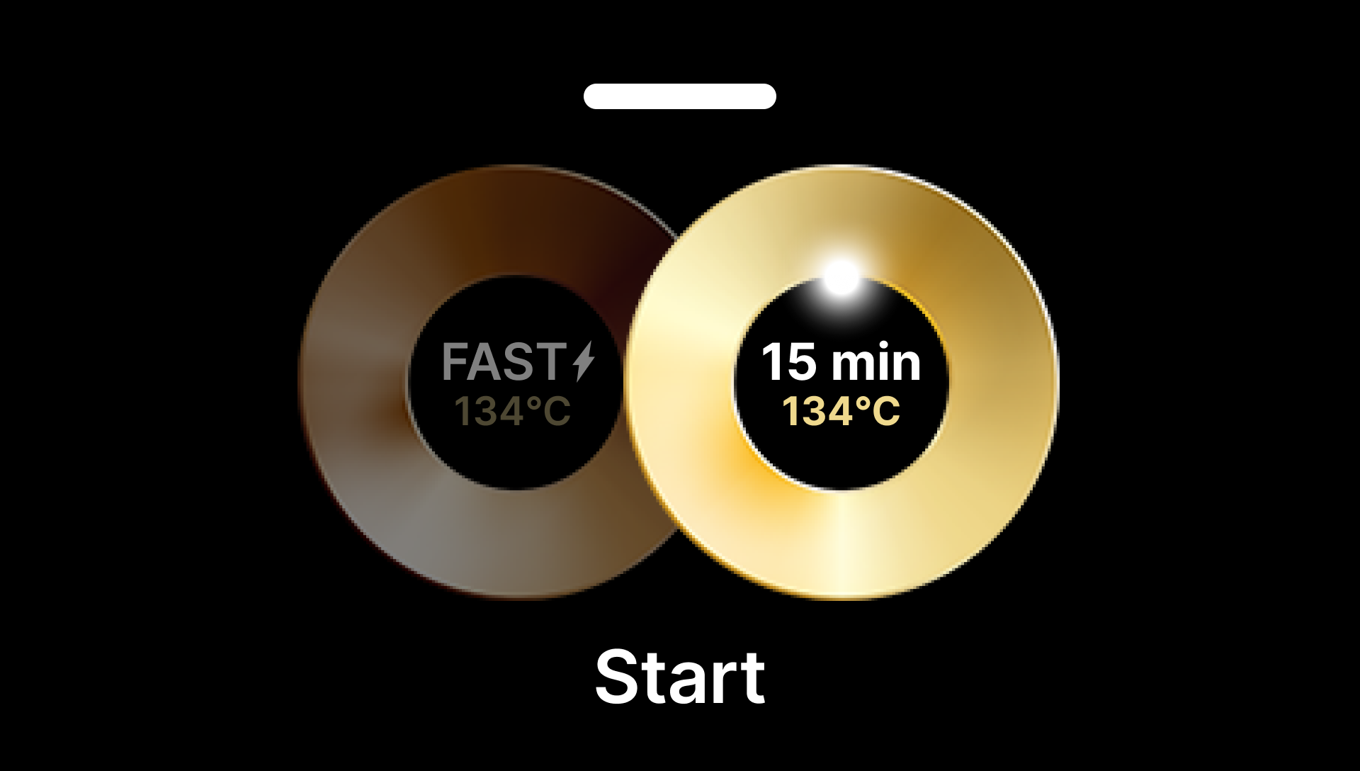 It offers a Class S cycle of just 7 minutes, ideal for fast processing of solid loads, and a full Class B cycle of approximately 15 minutes, ensuring complete and validated sterilisation in line with medical standards.